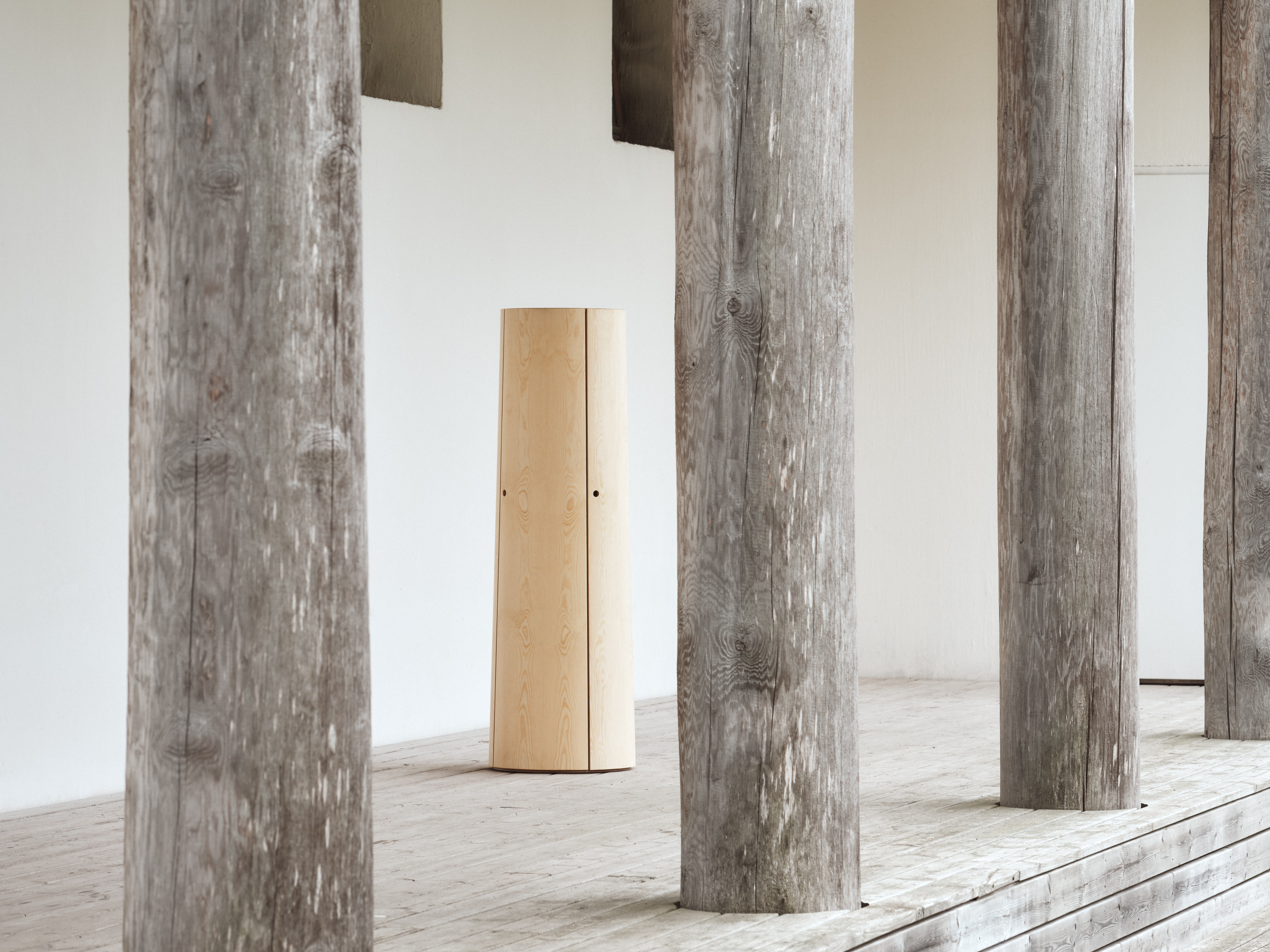 Even if we can't always see it, there's a carefully crafted process constantly unfolding around us. Nature guides the flow of life—from beginning to end, and back to the beginning again. Cleverly and gracefully, every need is met, and the cycle keeps turning. In this hidden story, everything has its purpose—even death: old stumps and decaying wood become homes and growing grounds for fungi, animals, and other life. From them, new life begins. The pine-veneered Kanto cabinet is a tribute to nature’s richness and the quiet life of the forest. Its opening doors remind us how much we miss by only looking at the surface. Nature knows what it's doing—if we just let it.